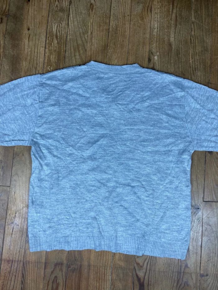 Pull maille vintage col V motifs rayures gris noir bleu clair XL - photo numéro 4