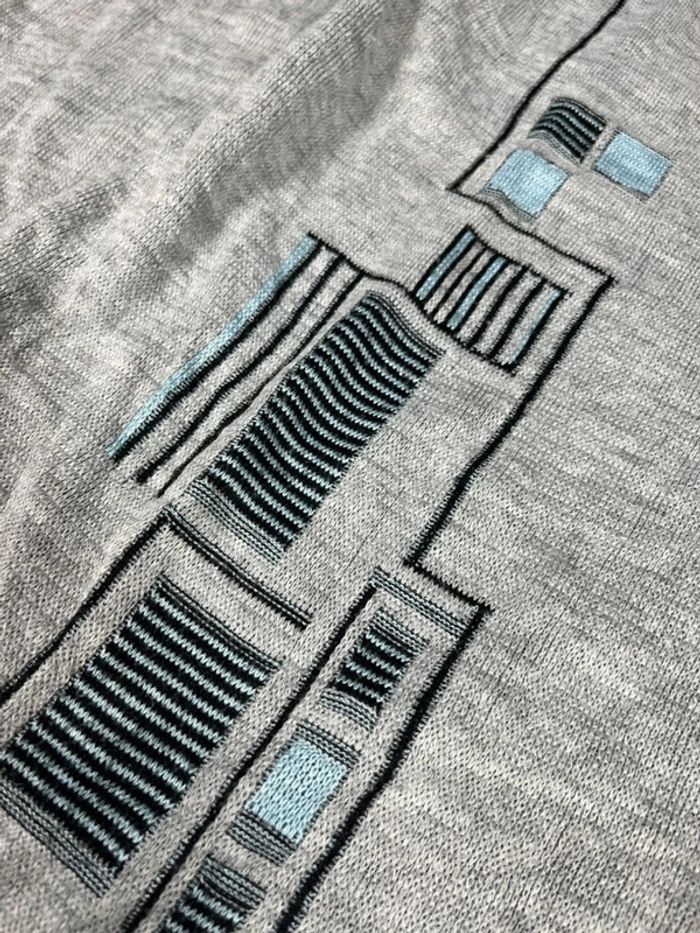 Pull maille vintage col V motifs rayures gris noir bleu clair XL