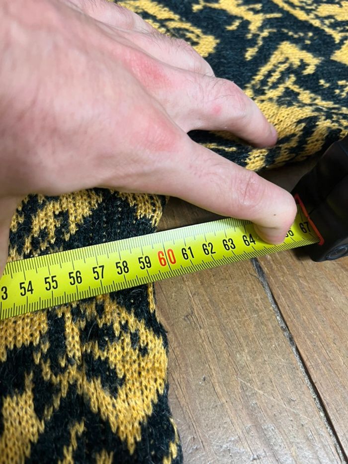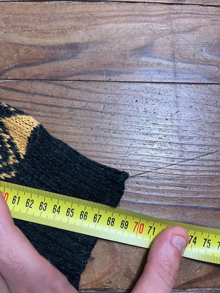 Pull maille vintage col V laine motifs moutarde noir L - photo numéro 11