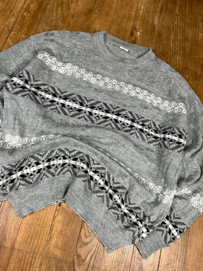 Pull vintage maille motifs rayures gris L - photo numéro 2