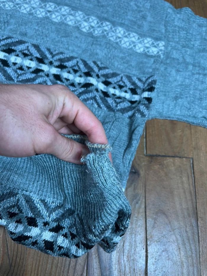Pull vintage maille motifs rayures gris L - photo numéro 10