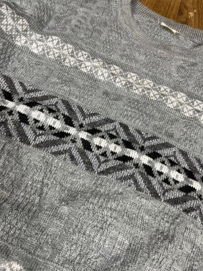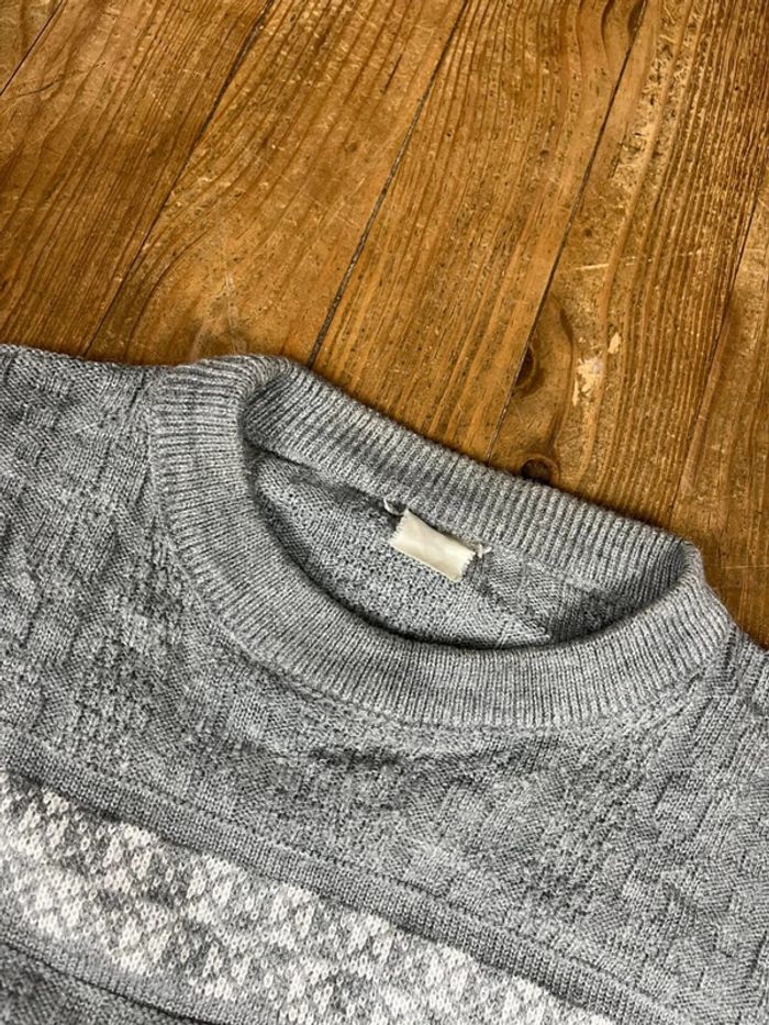 Pull vintage maille motifs rayures gris L - photo numéro 3