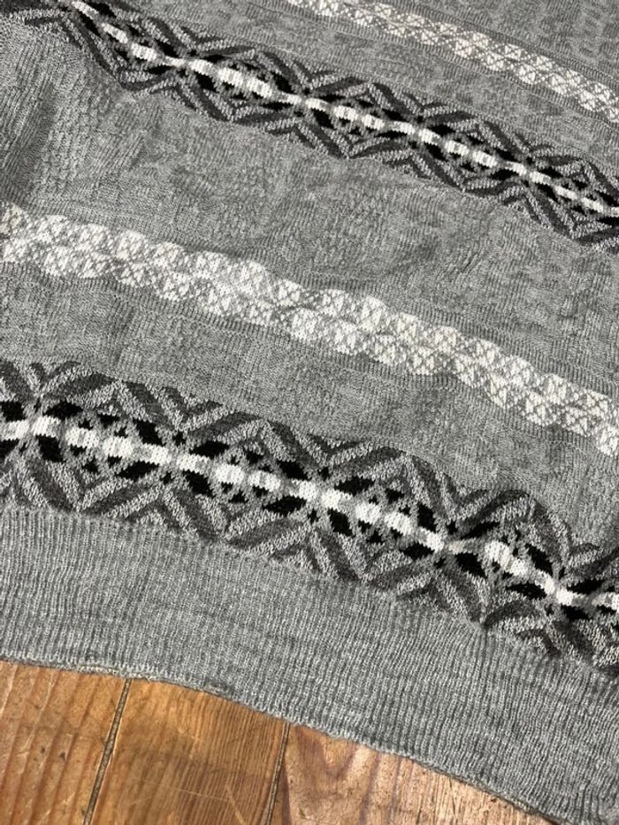 Pull vintage maille motifs rayures gris L - photo numéro 11