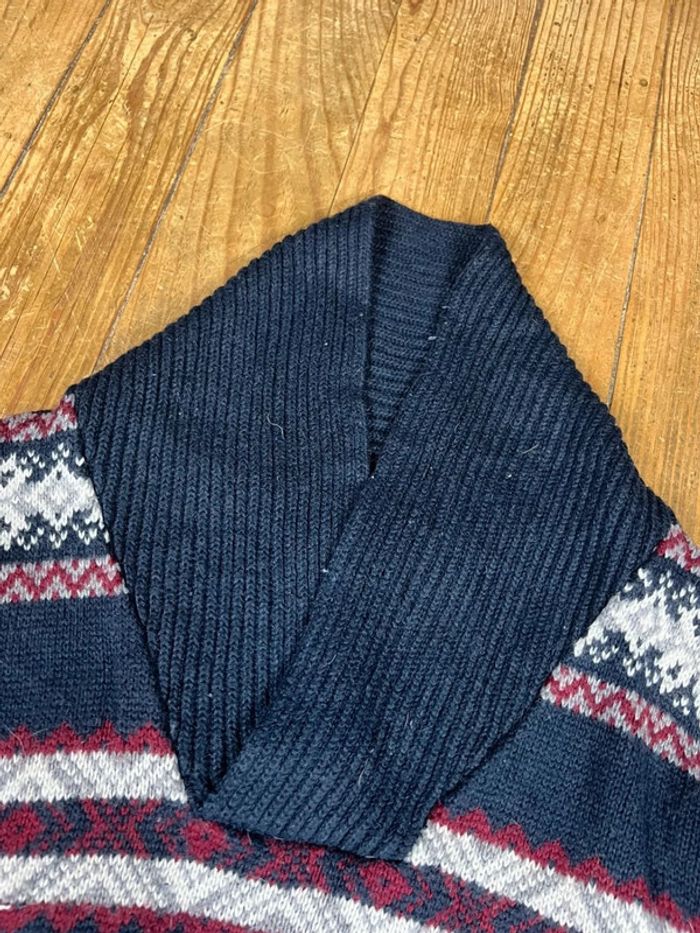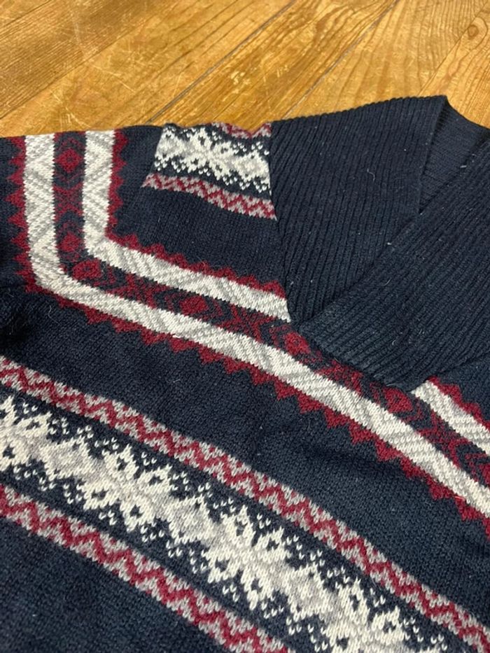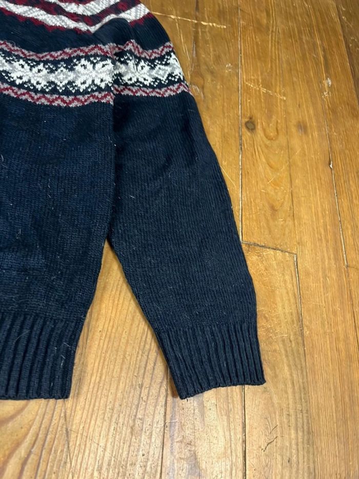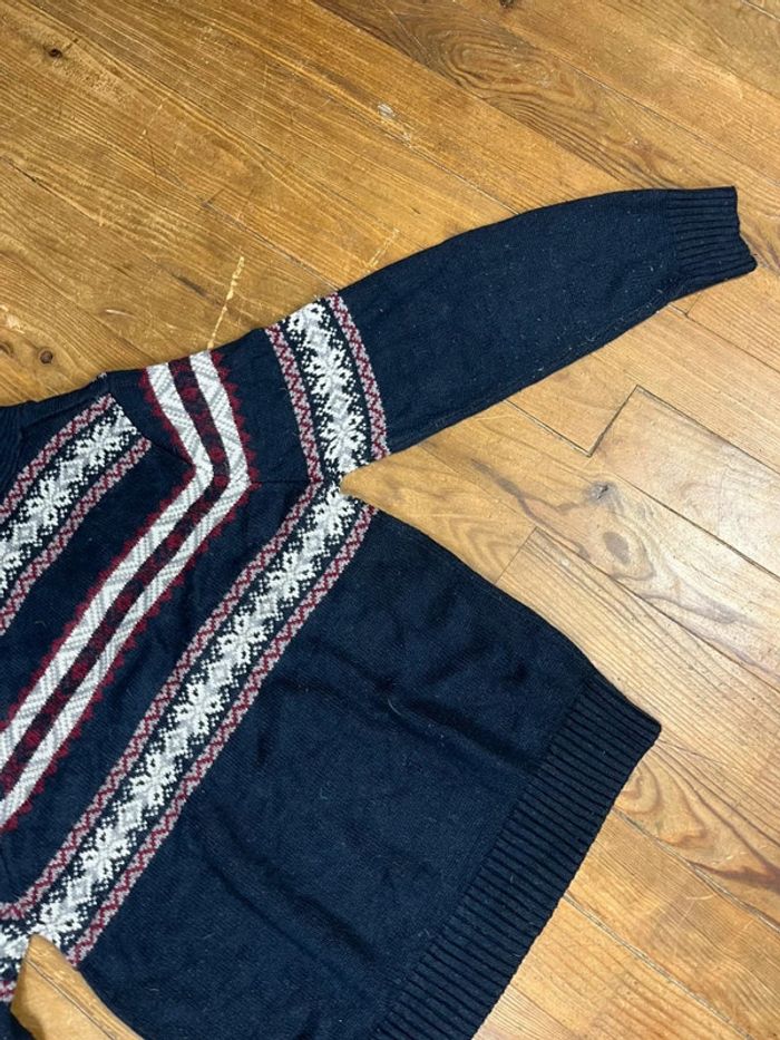 Pull maille vintage laine motifs rayures marine S - photo numéro 13