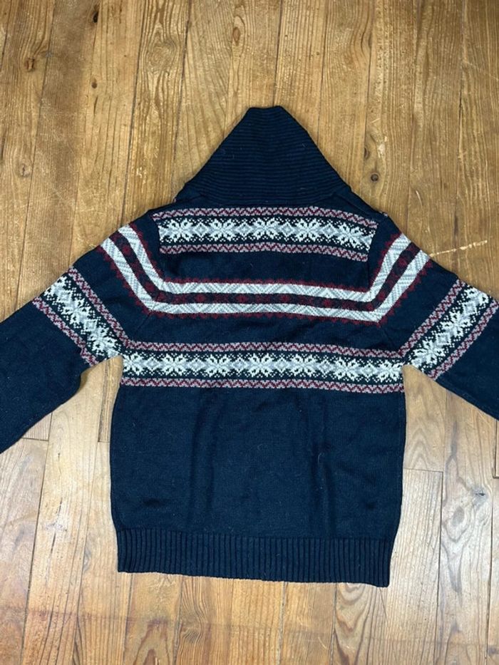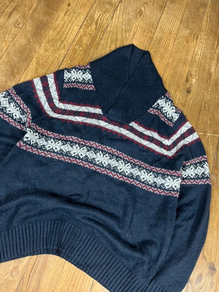 Pull maille vintage laine motifs rayures marine S - photo numéro 1