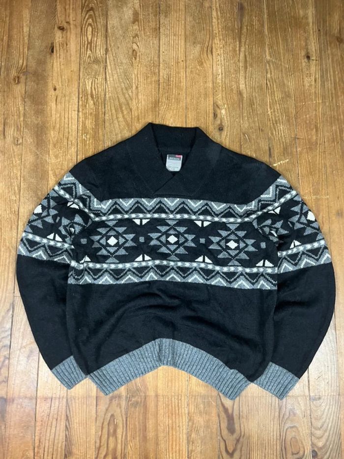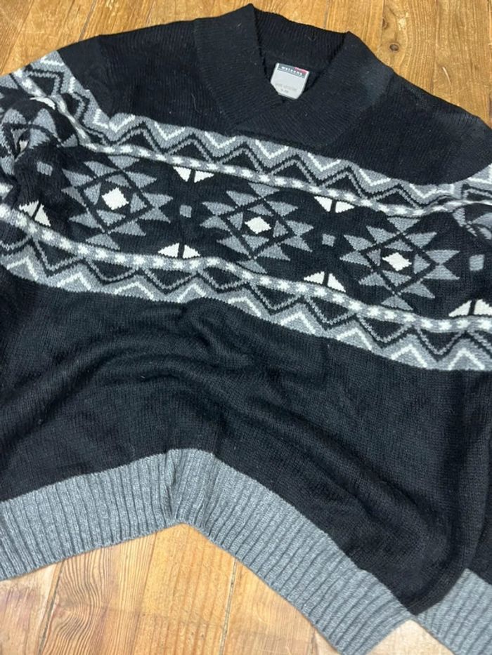 Pull maille vintage laine motifs rayures noir XL