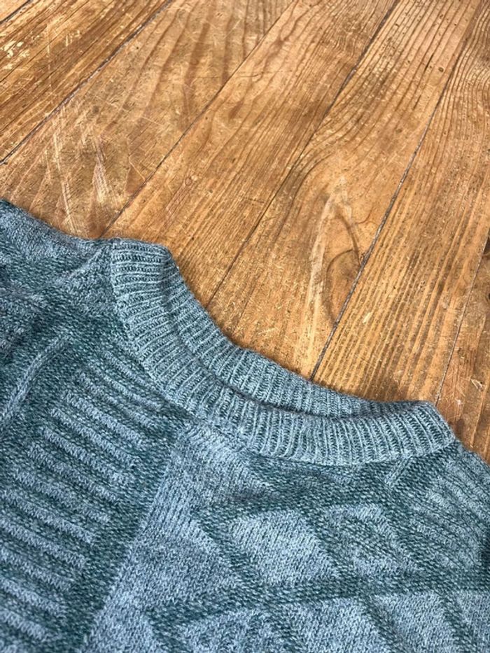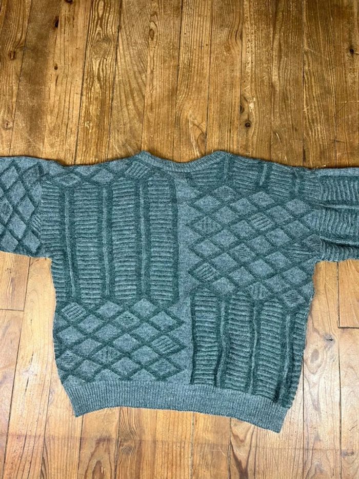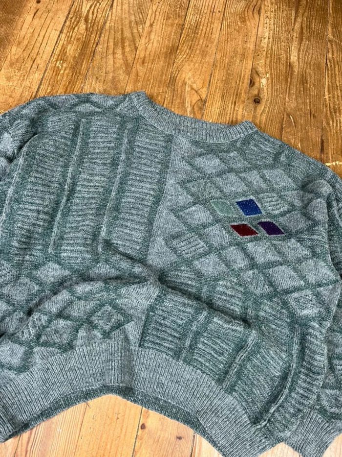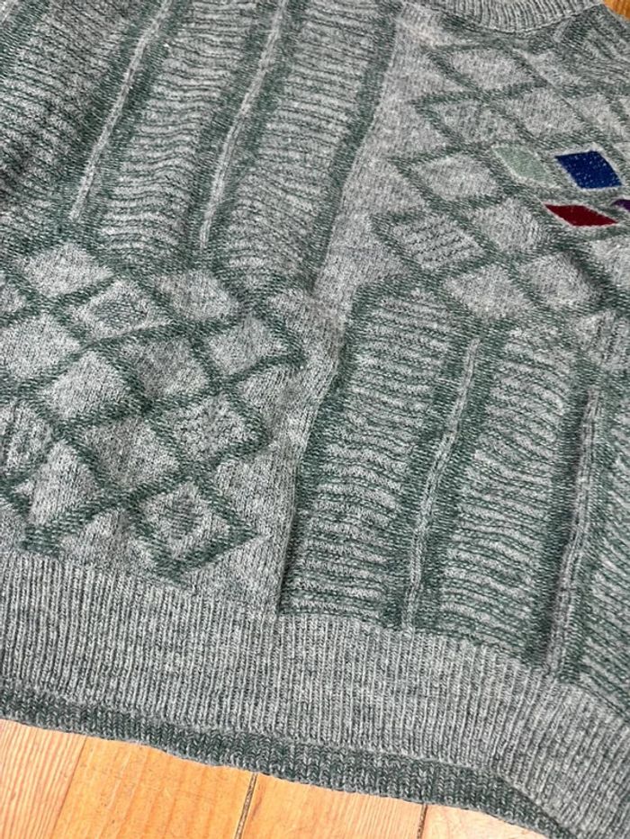 Pull maille vintage laine motifs rayures brodé M - photo numéro 7