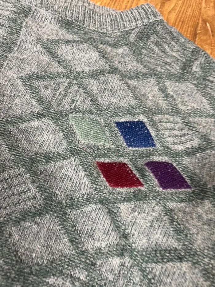 Pull maille vintage laine motifs rayures brodé M - photo numéro 9