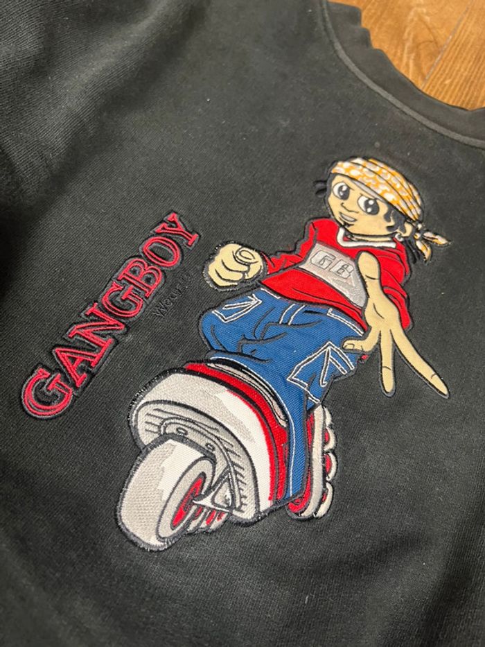 Sweat crewneck / pull vintage Y2K Hip-Hop brodé GangBoy S noir 100% coton - photo numéro 1