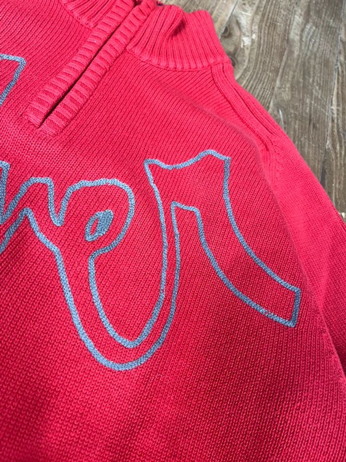 Pull maille vintage Y2K Surfwear Quiksilver rouge brodé L 1/4 zip coton - photo numéro 12