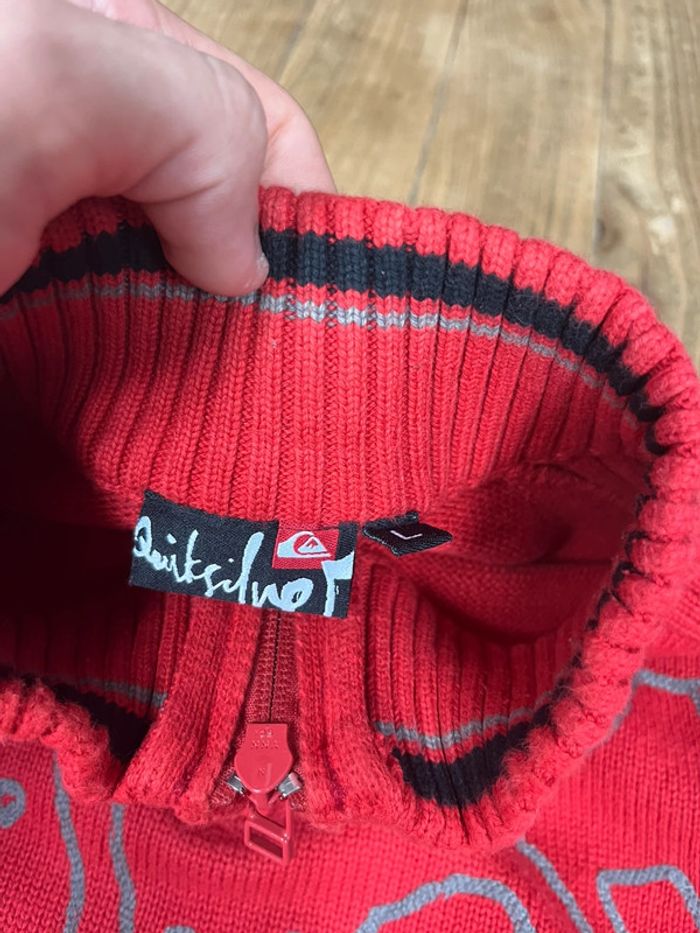 Pull maille vintage Y2K Surfwear Quiksilver rouge brodé L 1/4 zip coton - photo numéro 10