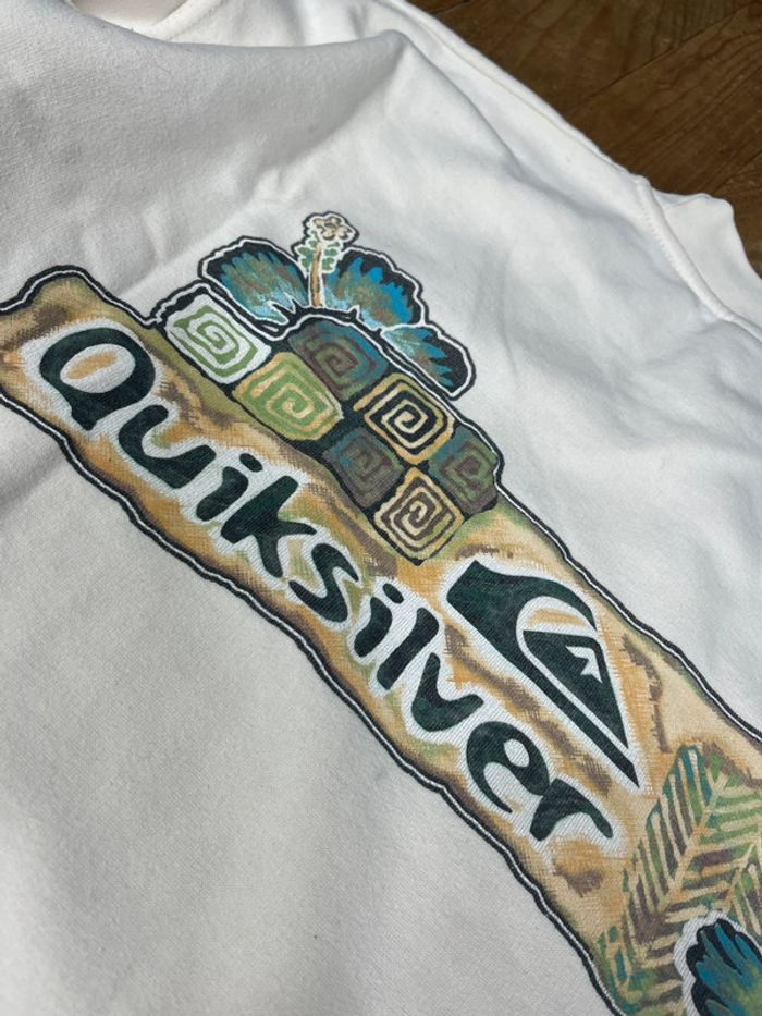 Sweat crewneck / pull vintage 90’s Surfwear Quiksilver imprimé graphique blanc XL Coton - photo numéro 2