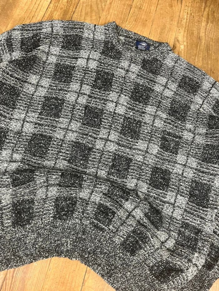 Pull maille vintage carreaux gris noir XXL 2XL - photo numéro 2