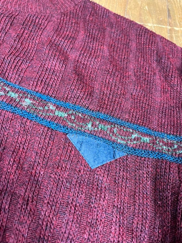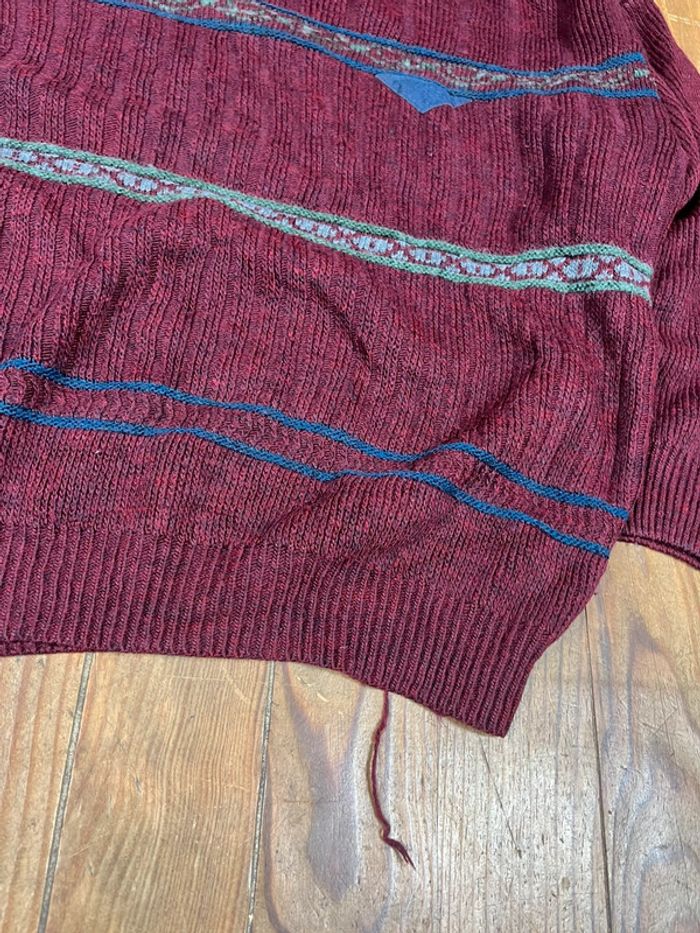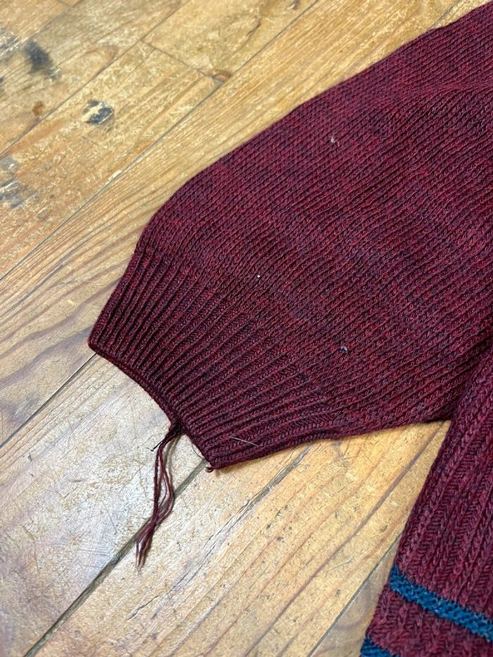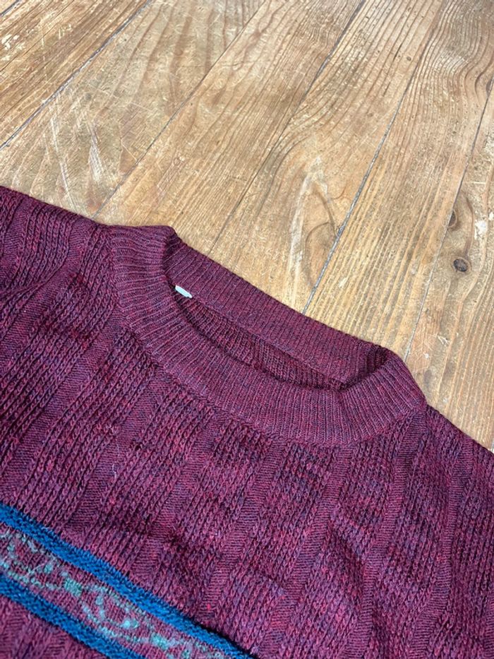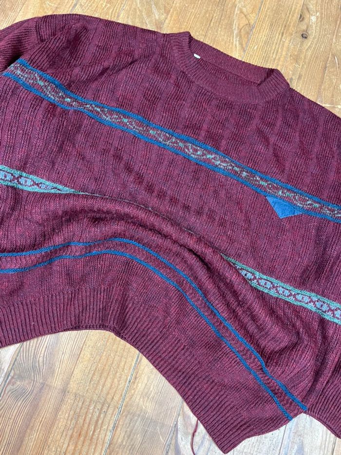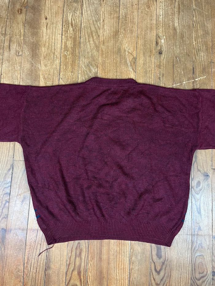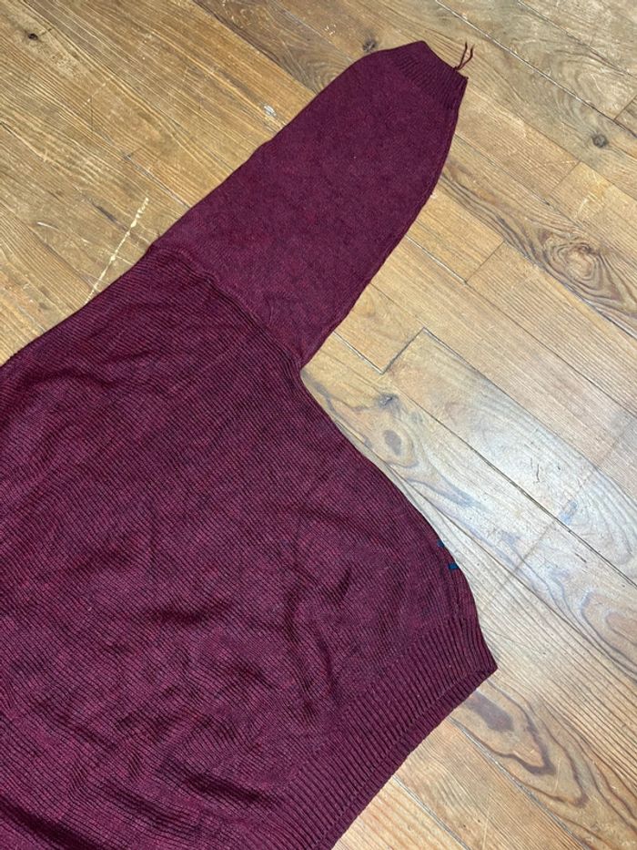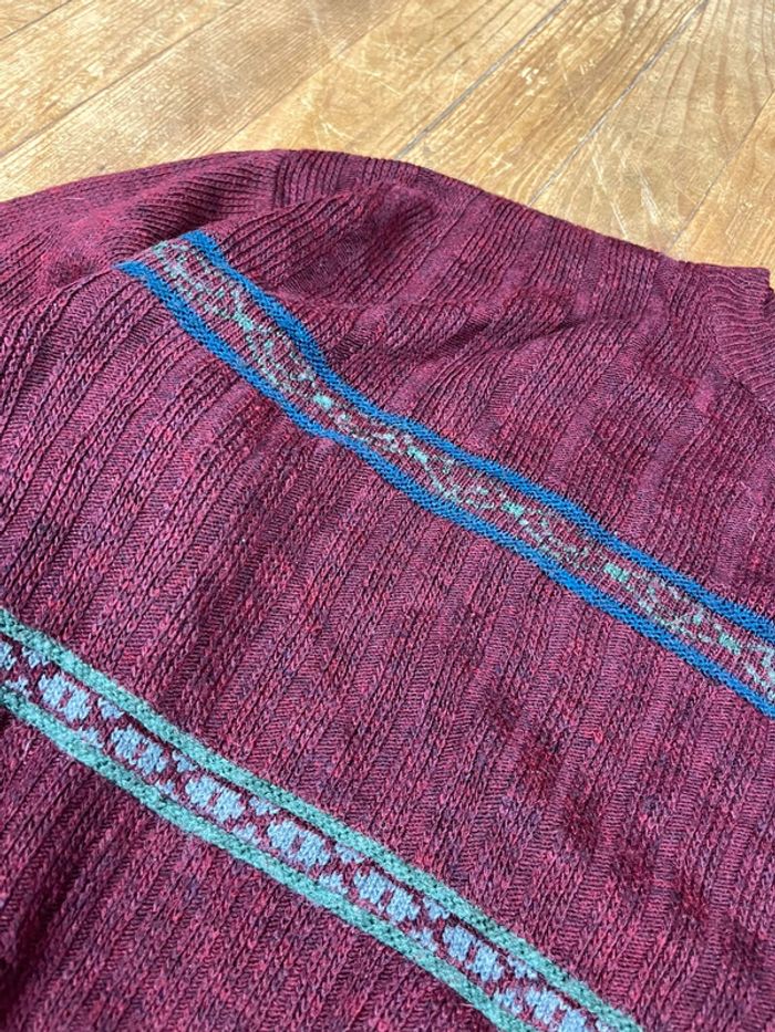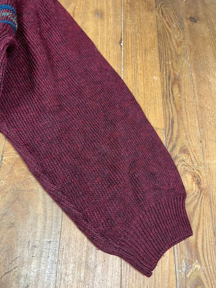Pull maille vintage motifs rayures bordeaux L baggy - photo numéro 11