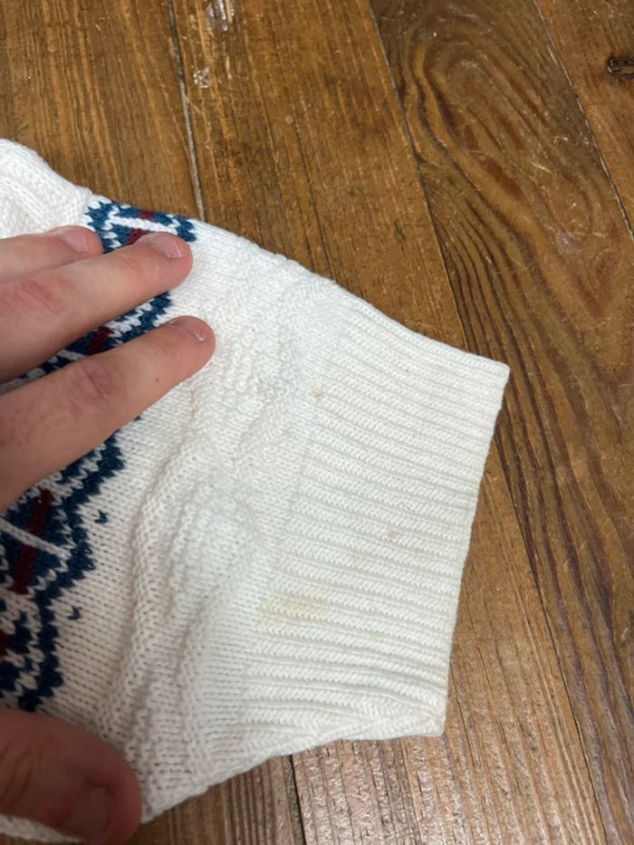Pull maille vintage motifs rayures blanc Made in USA M - photo numéro 11