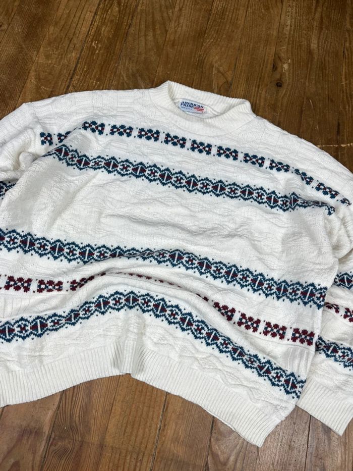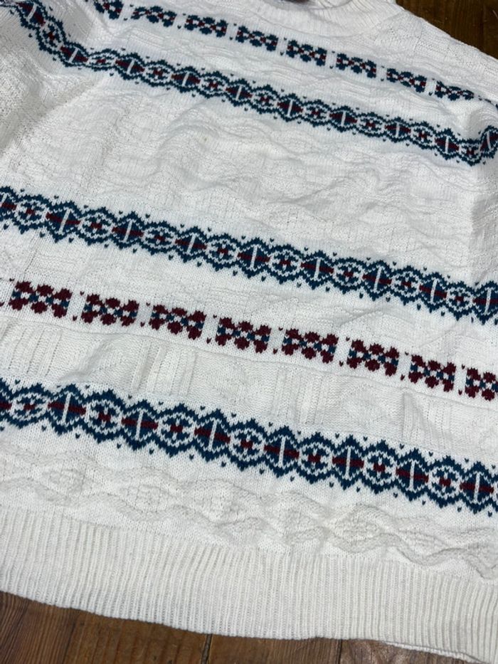 Pull maille vintage motifs rayures blanc Made in USA M - photo numéro 2