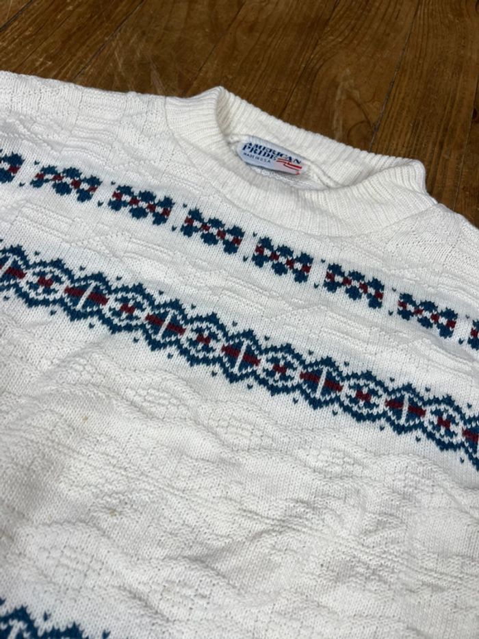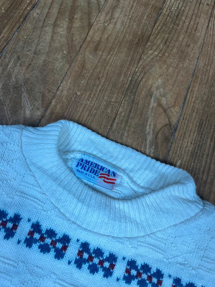 Pull maille vintage motifs rayures blanc Made in USA M - photo numéro 3