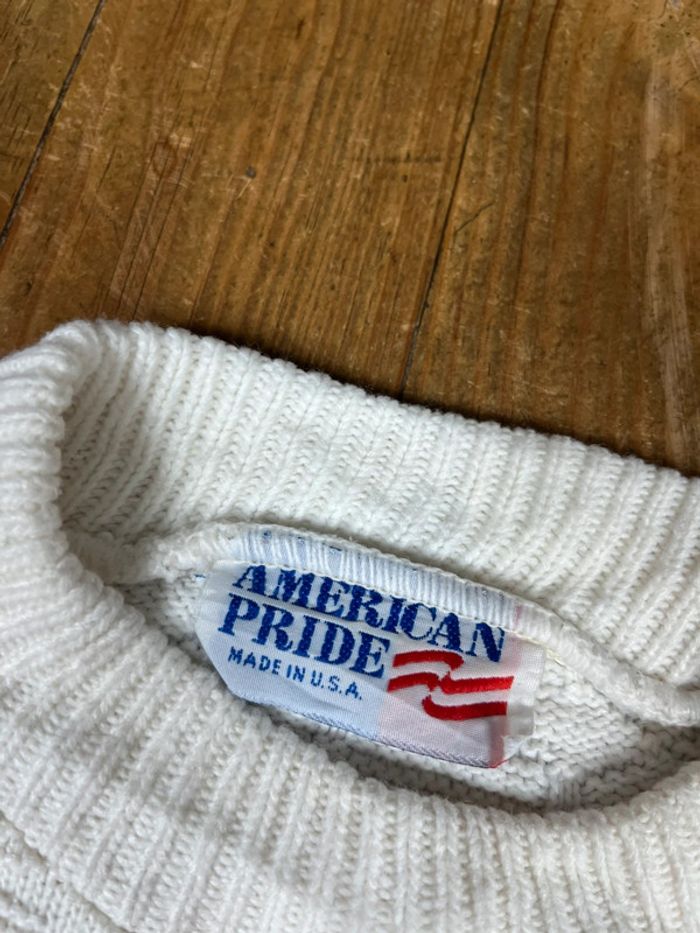 Pull maille vintage motifs rayures blanc Made in USA M - photo numéro 7