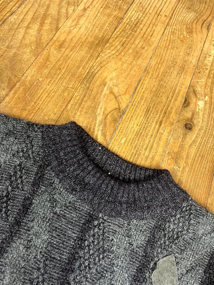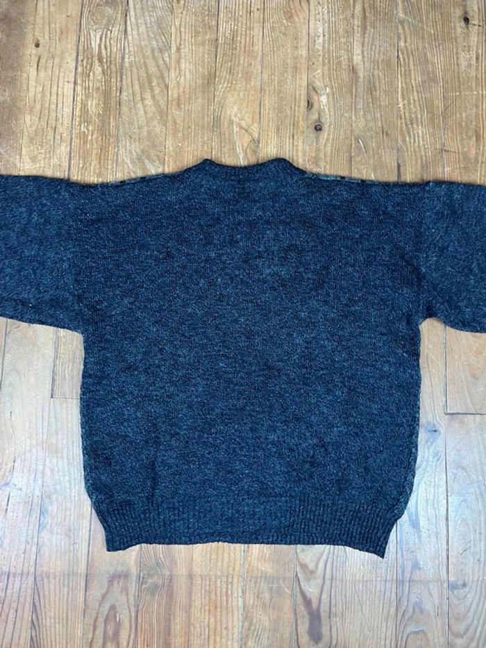 Pull maille vintage laine motifs gris patch Made in Italy S - photo numéro 10