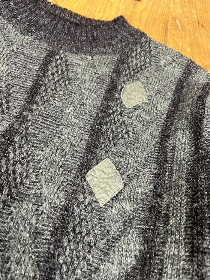 Pull maille vintage laine motifs gris patch Made in Italy S - photo numéro 2