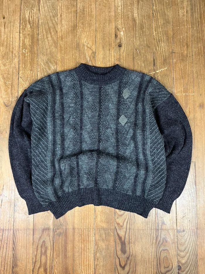 Pull maille vintage laine motifs gris patch Made in Italy S - photo numéro 1