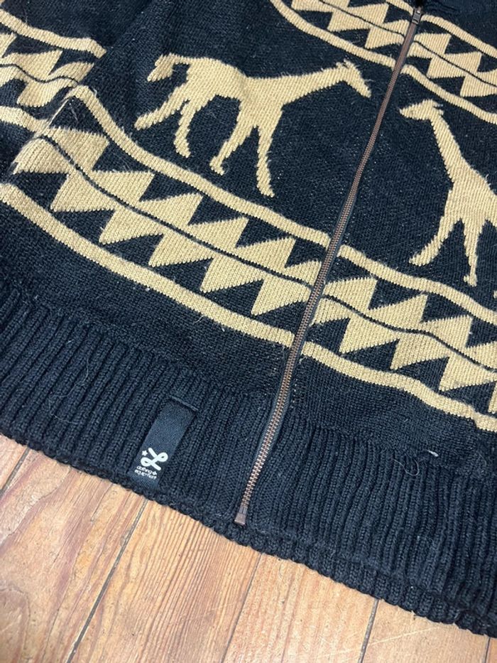 Pull cardigan zip-up vintage maille laine rayures motifs girafes animaux S - photo numéro 5