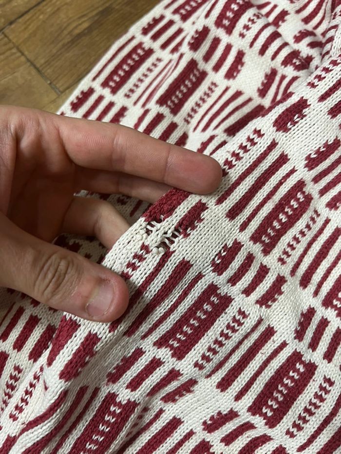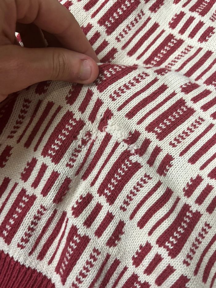 Pull vintage maille 100% coton motifs crème bordeaux S - photo numéro 13