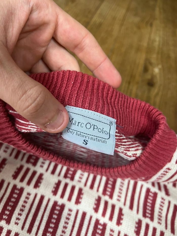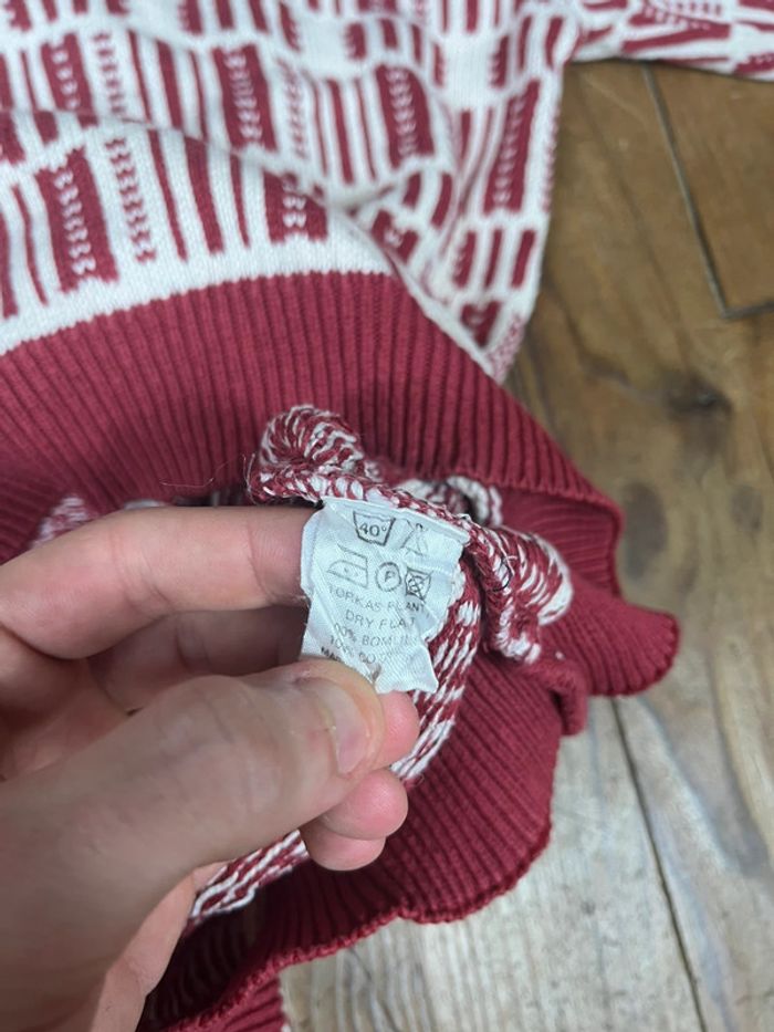 Pull vintage maille 100% coton motifs crème bordeaux S - photo numéro 14