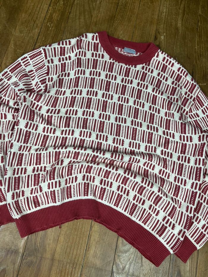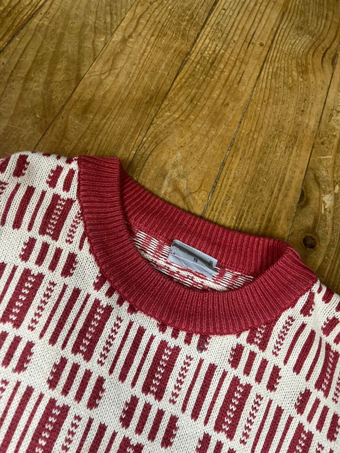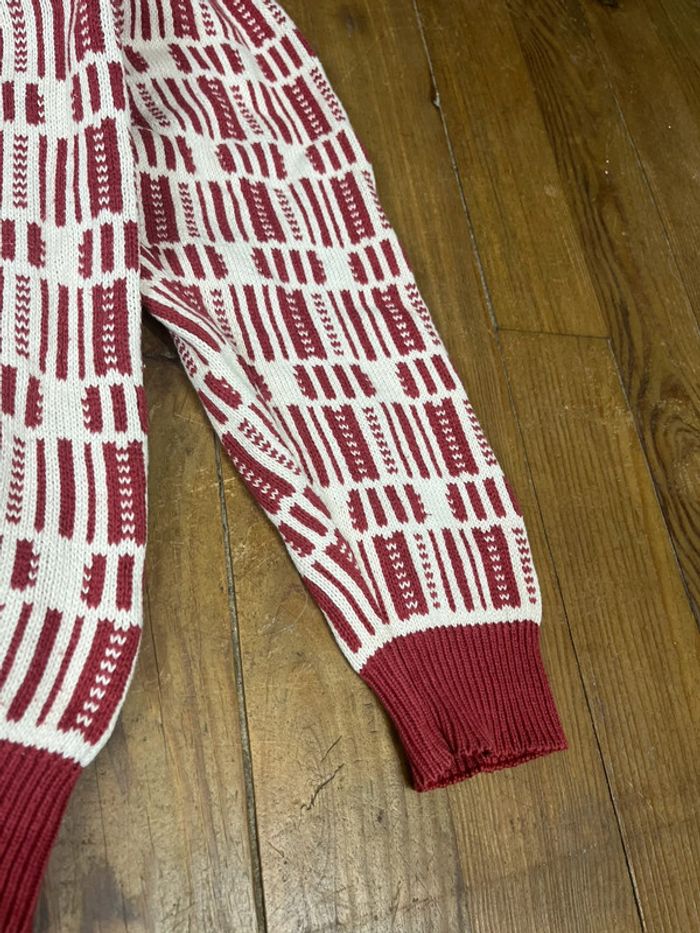 Pull vintage maille 100% coton motifs crème bordeaux S - photo numéro 1
