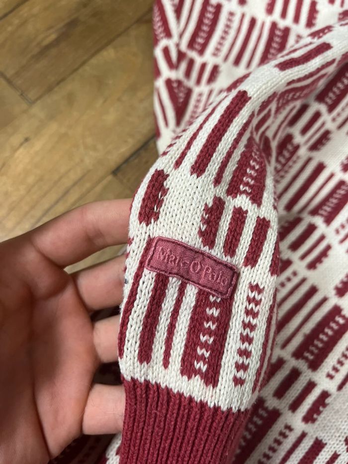 Pull vintage maille 100% coton motifs crème bordeaux S - photo numéro 8