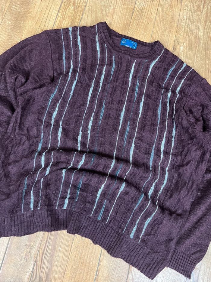 Pull vintage maille motifs rayures noir gris XL