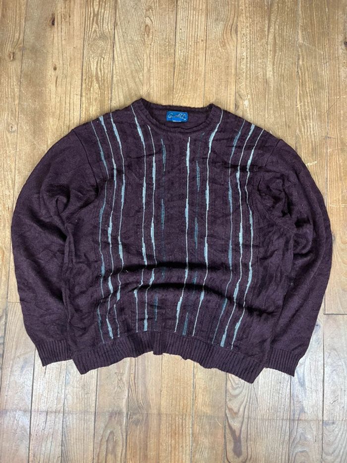 Pull vintage maille motifs rayures noir gris XL - photo numéro 1