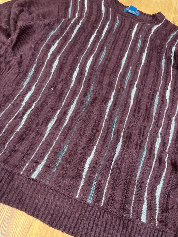 Pull vintage maille motifs rayures noir gris XL - photo numéro 2