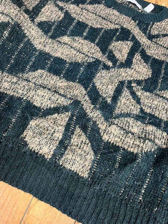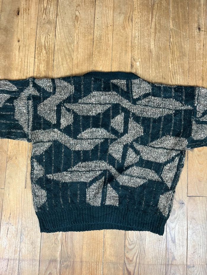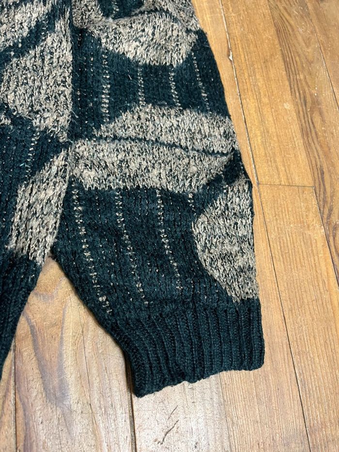 Pull maille vintage à motifs noir kaki XL - photo numéro 6