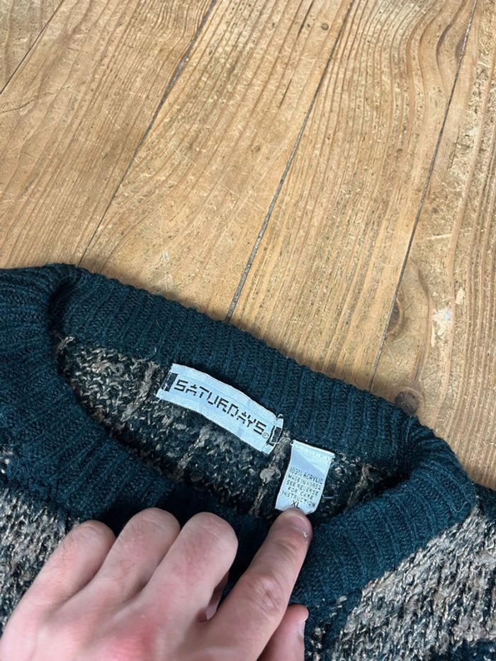 Pull maille vintage à motifs noir kaki XL - photo numéro 9
