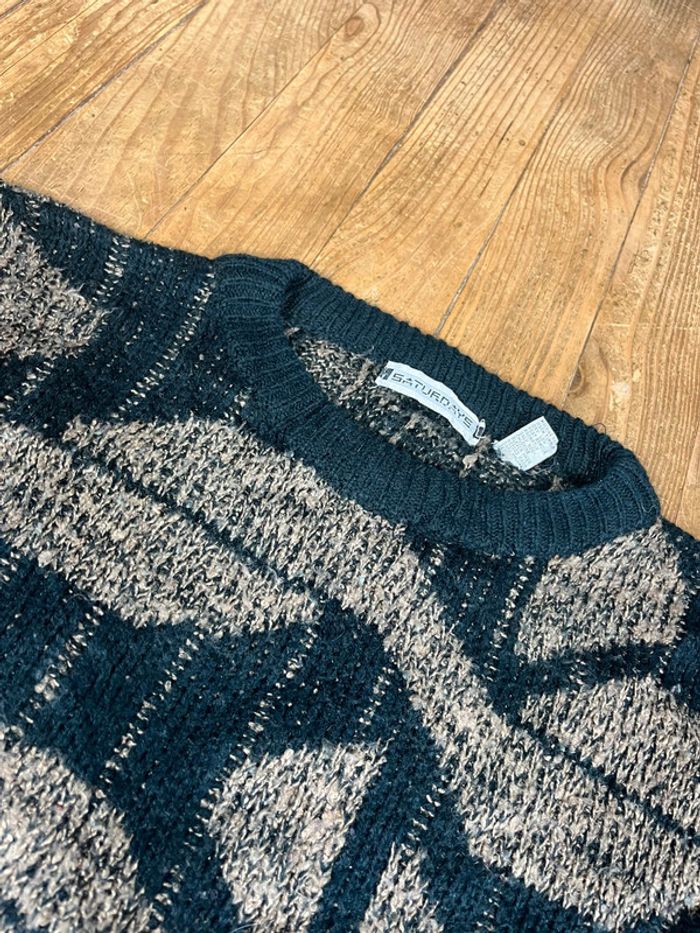 Pull maille vintage à motifs noir kaki XL - photo numéro 3