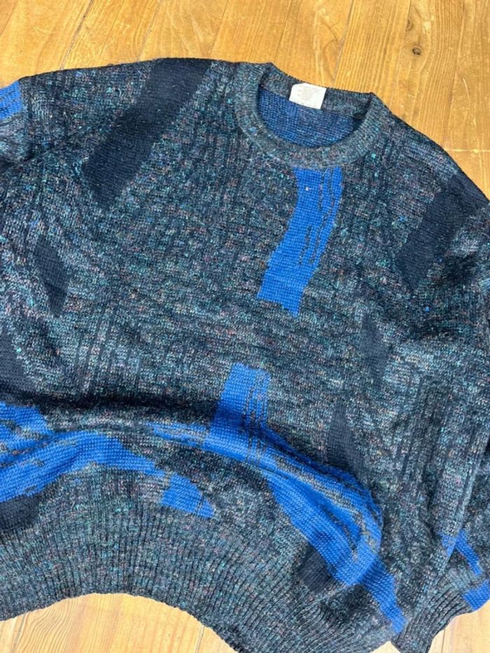 Pull maille vintage laine motifs noir marine L - photo numéro 2