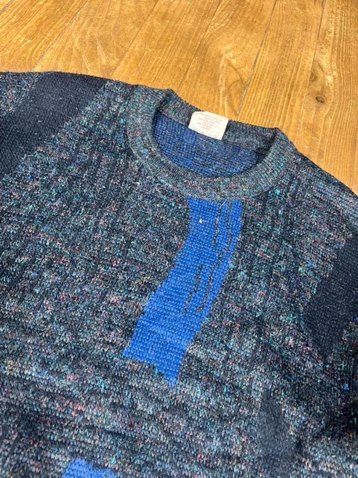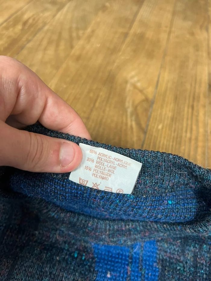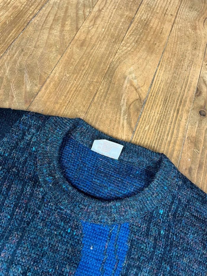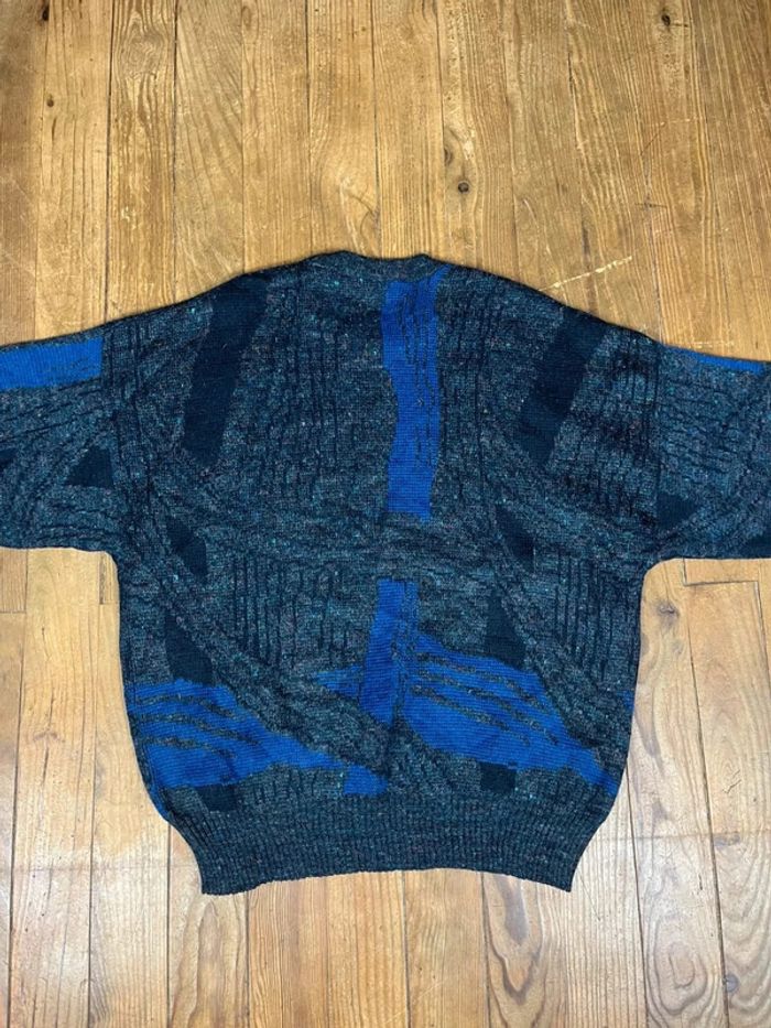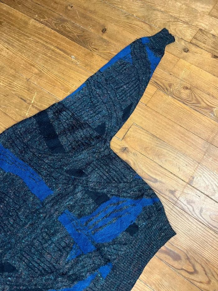 Pull maille vintage laine motifs noir marine L - photo numéro 7