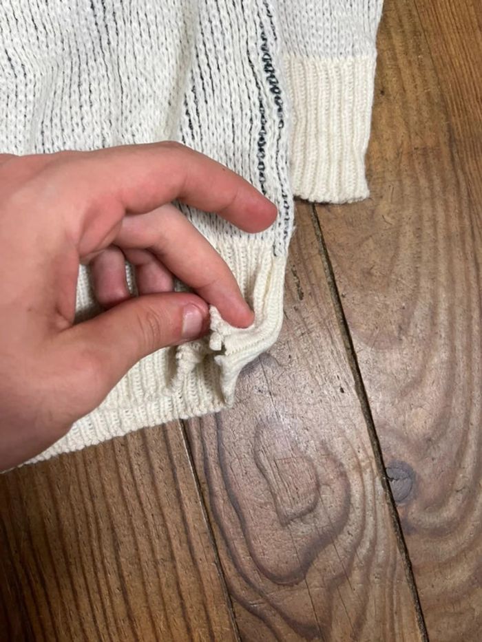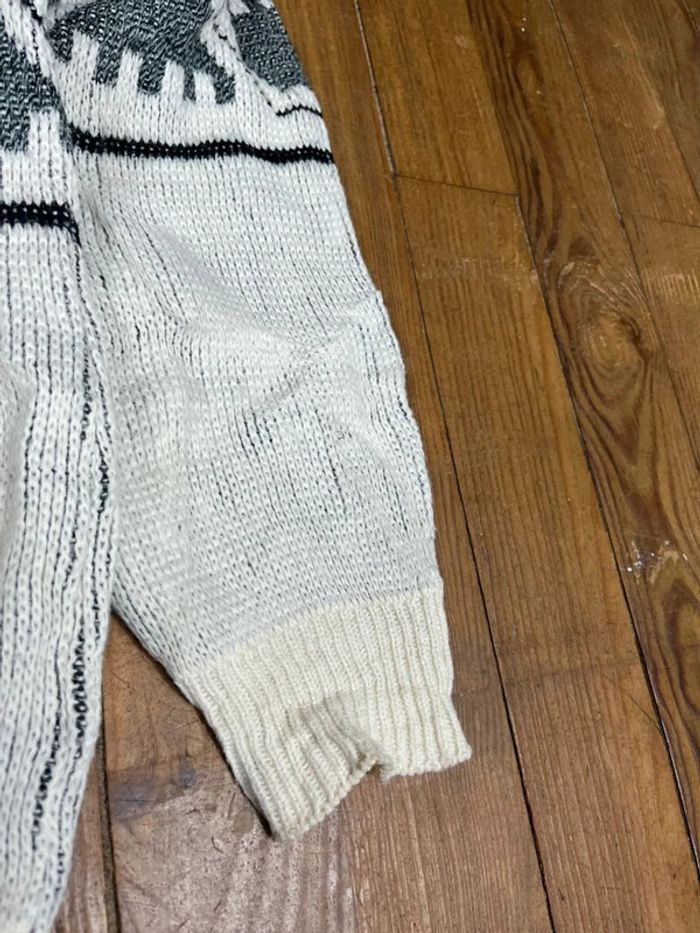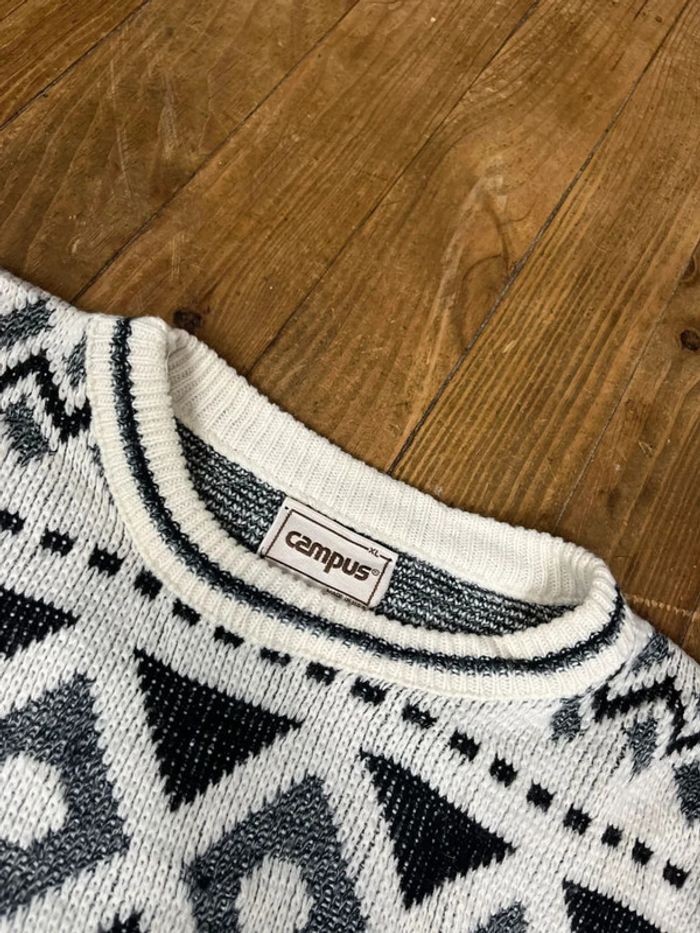 Pull maille vintage motifs rayures blanc noir gris Made in USA L - photo numéro 7
