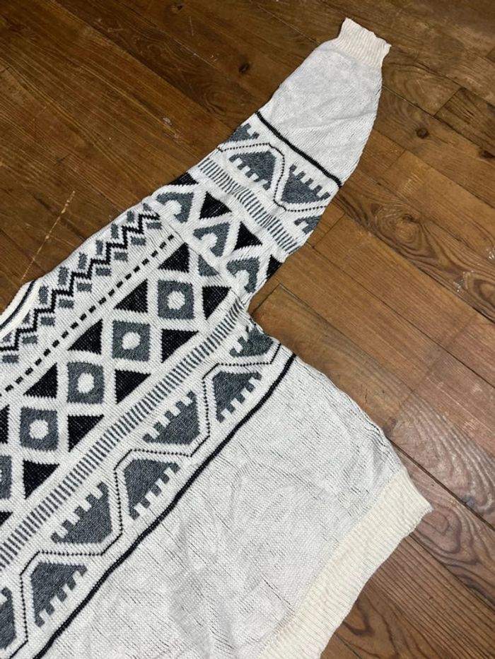 Pull maille vintage motifs rayures blanc noir gris Made in USA L - photo numéro 9