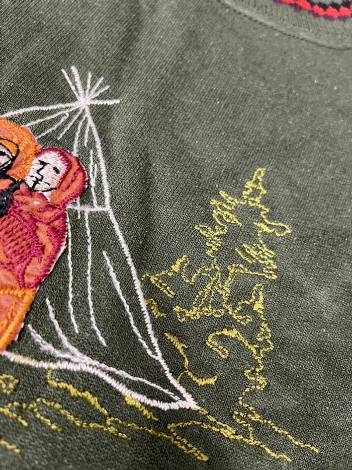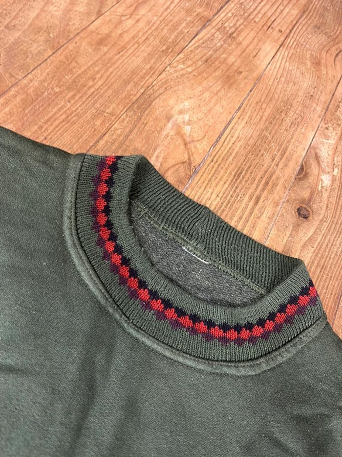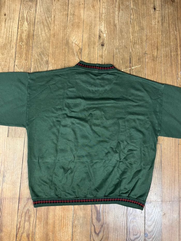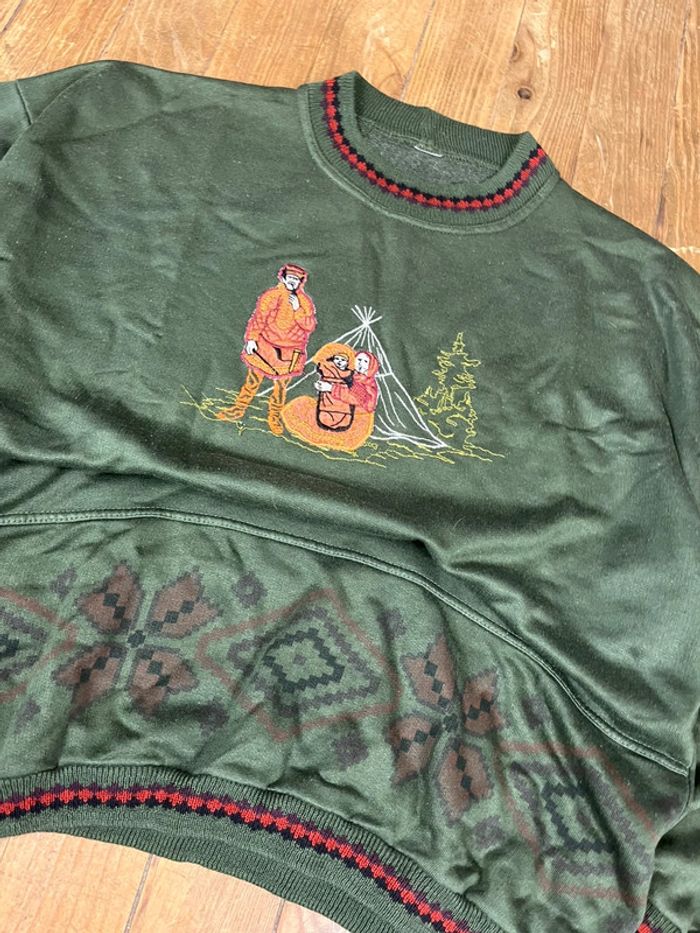 Pull / sweat vintage vert foncé brodé personnages paysages M - photo numéro 12