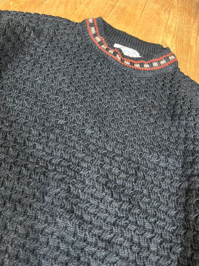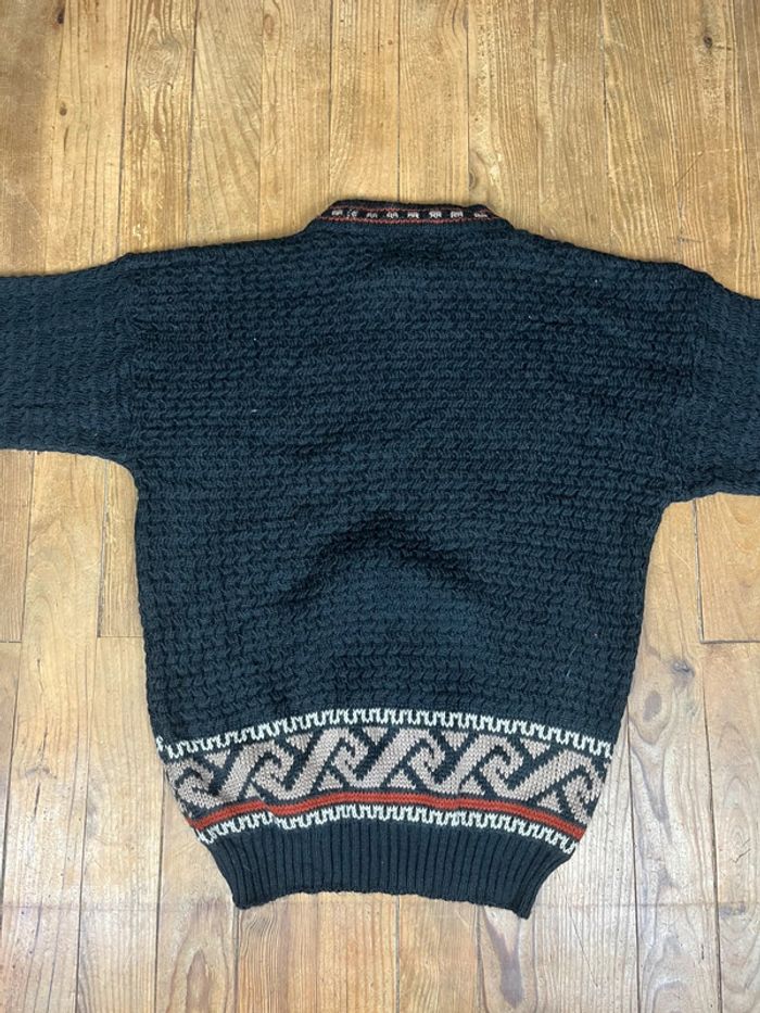 Pull maille vintage motifs rayures noir Made in England L - photo numéro 1
