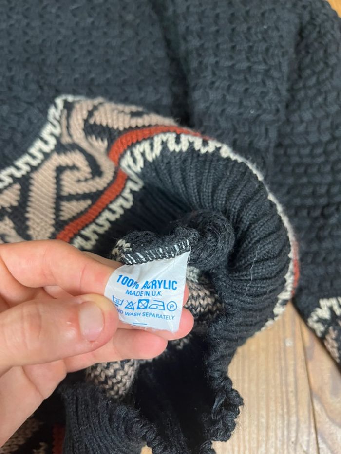 Pull maille vintage motifs rayures noir Made in England L - photo numéro 7