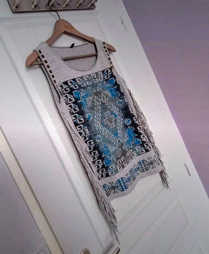 Débardeur gris bleu à franges 36 - photo numéro 5