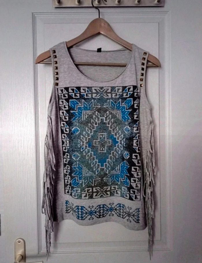 Débardeur gris bleu à franges 36 - photo numéro 1