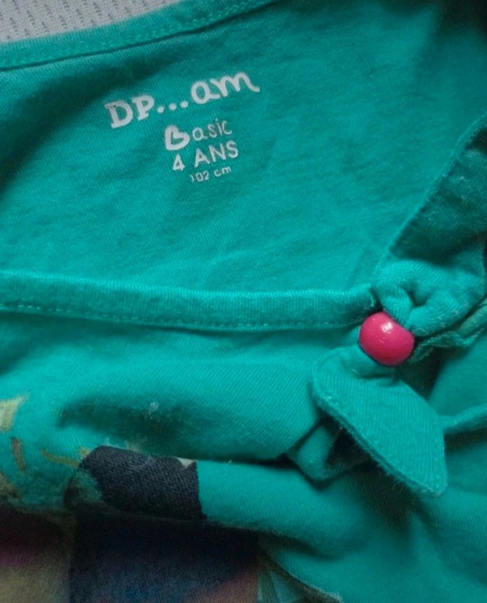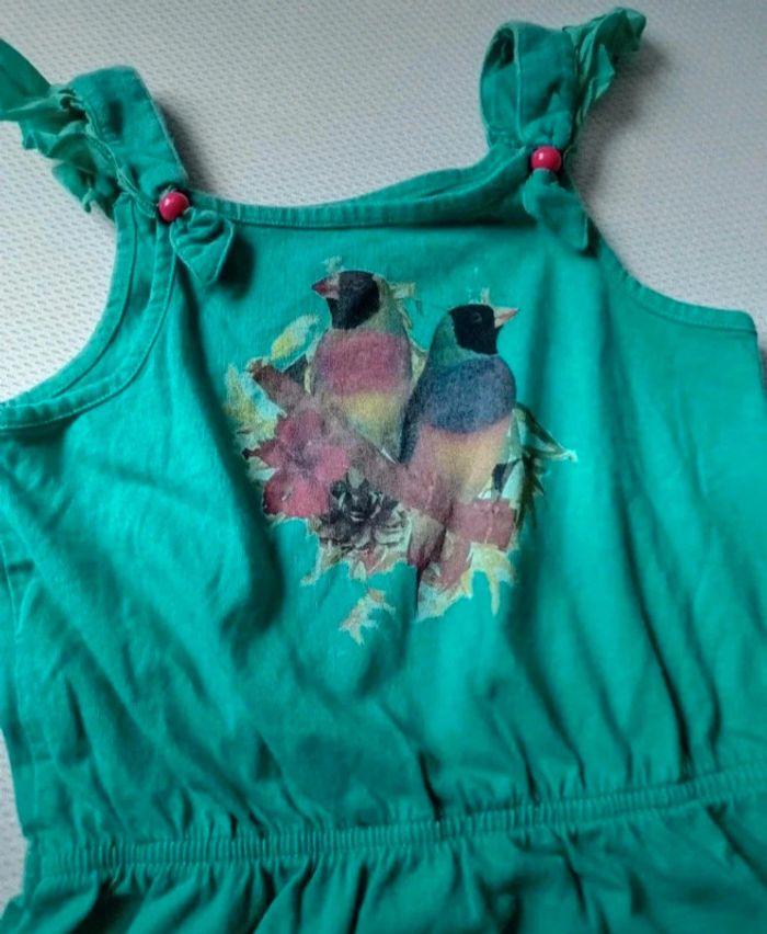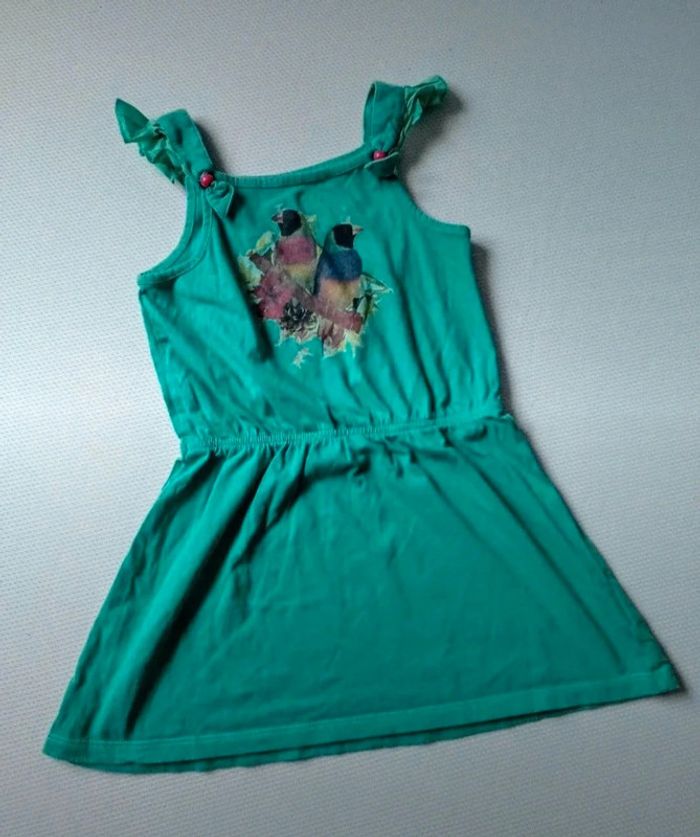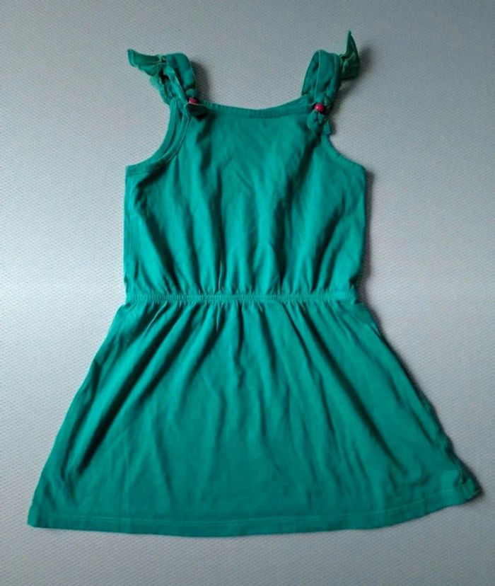 Robe été 100 % coton Taille élastique Perles et volants aux épaules Couleur vert clair Étiquette taille 4 ans #sev40000fille4ans
