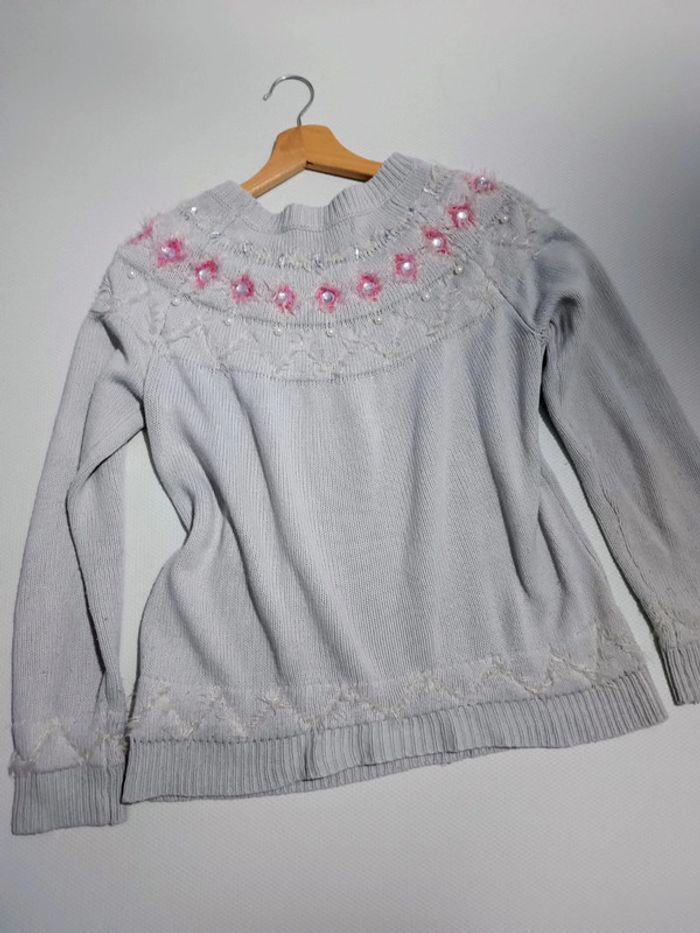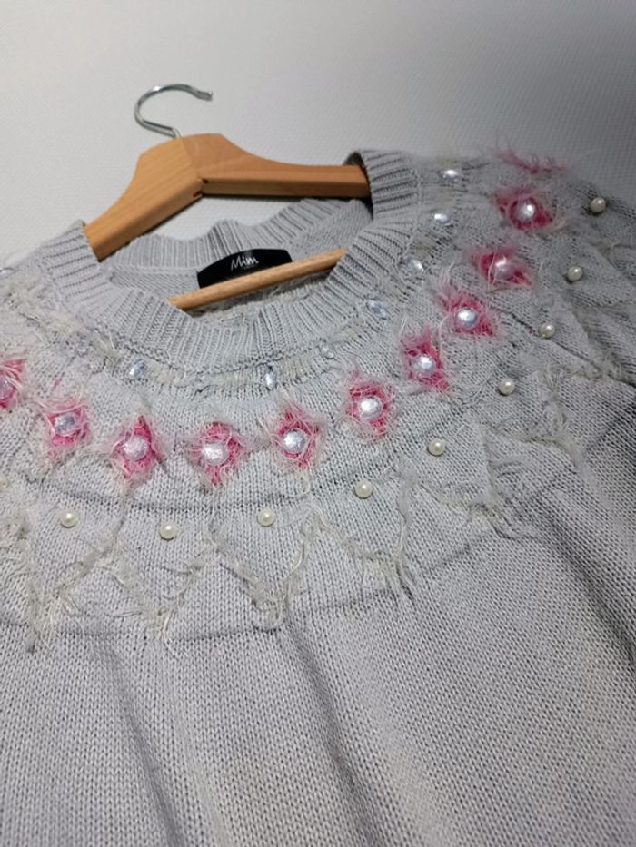 Pull gris perle Agrémenté de perles et strass Taille 38/40 Mim #sev40000femme38