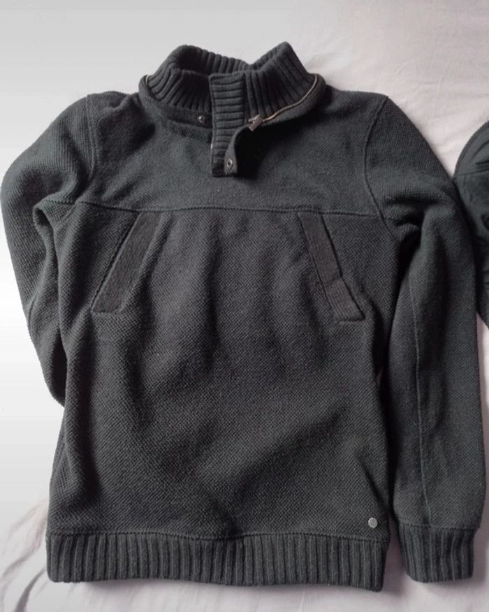 Pull d'hiver (épais et chaud) 4 poches Capuche amovible par fermeture éclair Couleur kaki très foncé Bonobo jeans Étiquette taille M Acheté neuf 55€