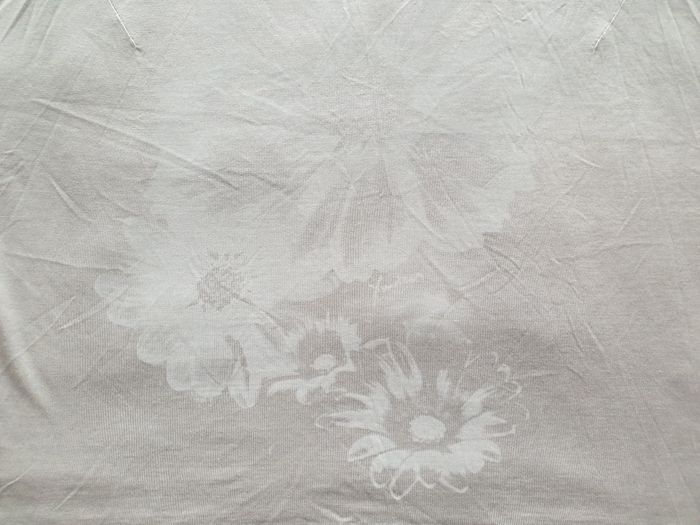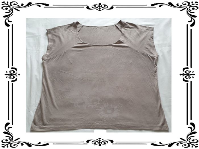 Tee shirt taille 50. Tee shirt manches courtes beige motif grosses fleurs blanches peu visibles à plat. Tissu extensible sur 8 cm. Largeur sous les bras : 67 cm Largeur à la taille : 63,5 cm Largeur en bas: 66,5 cm Hauteur du décolleté à partir des épaules: 17,5 cm Longueur totale: 66 cm Longueur des manches à partir de l’encolure: 21 cm En très bon état. Sans marque. 3€. #vero38110vetementsfemme50