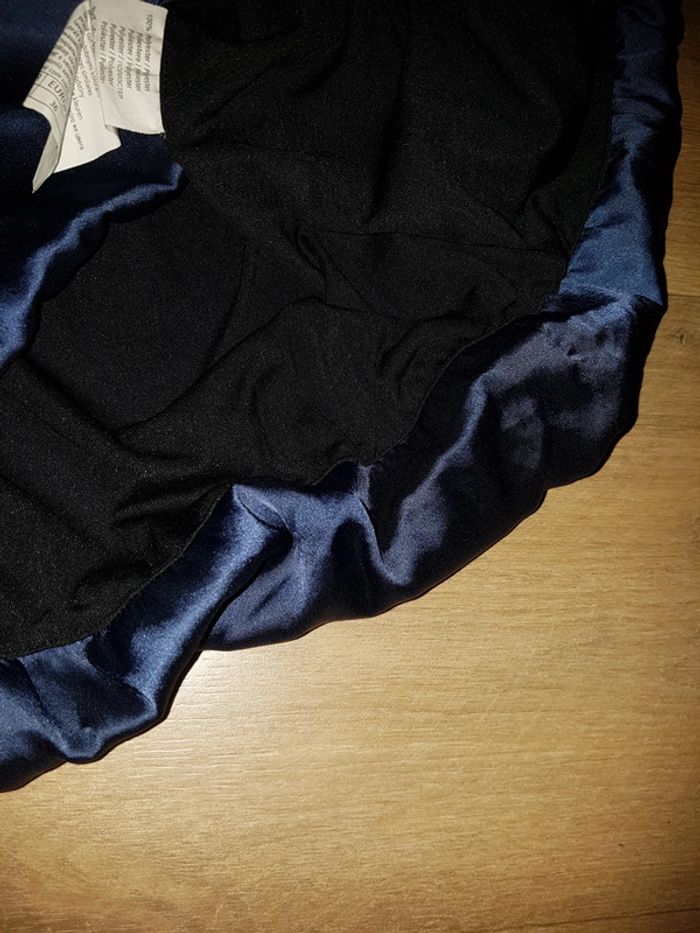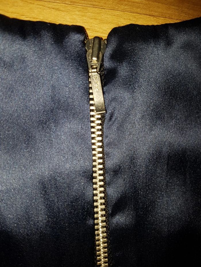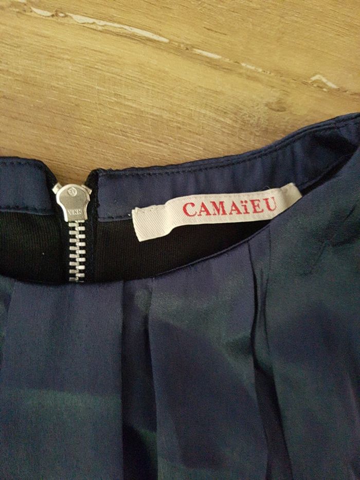 Très joli haut sans manche Camaïeu taille 36, bleu marine avec élastique à la taille et fermeture éclair dans le dos Matière satinée brillante